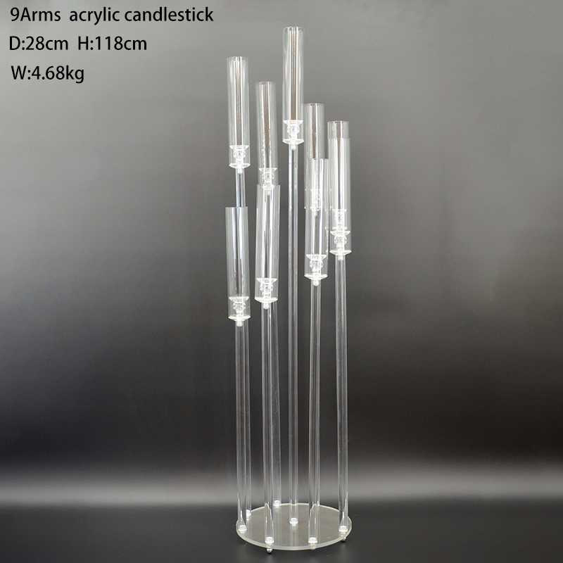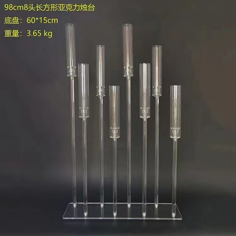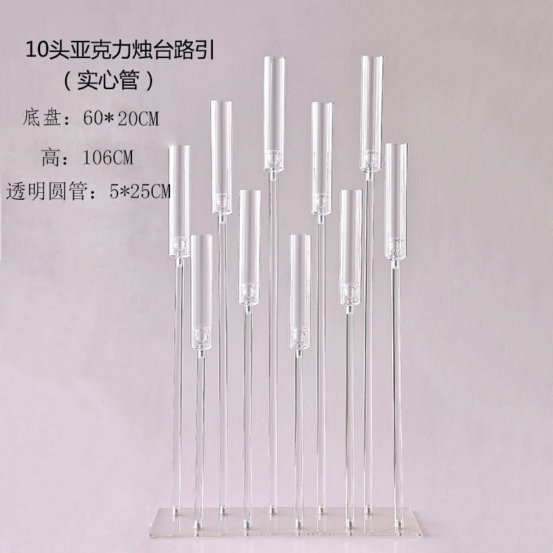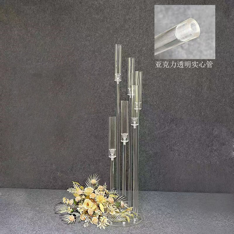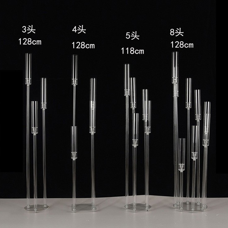 Stunning modern acrylic crystal candle stand designed for wedding aisle, wedding hall, stage and window display. Features elegant hollow & solid tube styles with 3–10 heads for versatile decor choices. High-quality clear acrylic offers excellent light transmission, creating a romantic, luxury and eye-catching effect. Sturdy, durable, easy to set up and reusable. Perfect for weddings, events, parties and upscale decoration. A must-have prop to elevate your wedding scene.